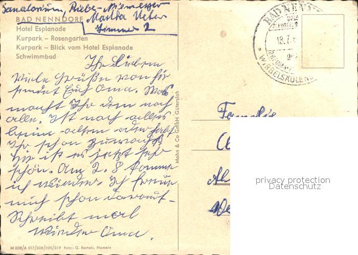 72179990 alte Postkarte Bad Nenndorf Hotel Esplanade Kurpark Rosengarten Schwimmbad postalisch gelaufen Erhaltung siehe scans KatCode: 11110003257006