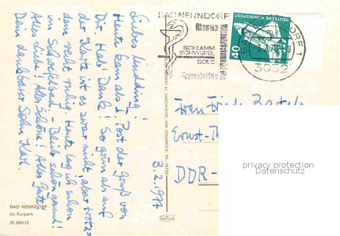 72697424 alte Postkarte Bad Nenndorf Im Kurpark postalisch gelaufen Erhaltung siehe scans [WerneD78] KatCode: 11110003257006