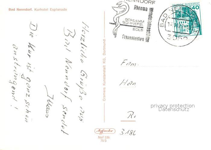 73005221 alte Postkarte Bad Nenndorf Kurhotel Esplanade postalisch gelaufen Erhaltung siehe scans [WerneD78] KatCode: 11110003257006