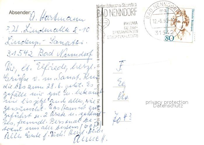 73007683 alte Postkarte Bad Nenndorf LindenPark Sanatorium postalisch gelaufen Erhaltung siehe scans [WerneD78] KatCode: 11110003257006