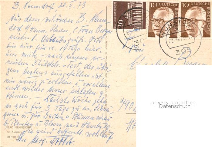 73081228 alte Postkarte Bad Nenndorf Partie im Kurpark Wasserspiele postalisch gelaufen Erhaltung siehe scans [FriedD77] KatCode: 11110003257006