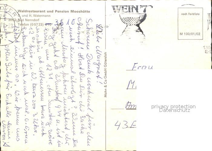 71944782 alte Postkarte Bad Nenndorf Waldrestaurant und Pension Mooshuette postalisch gelaufen Erhaltung siehe scans KatCode: 11110003257006
