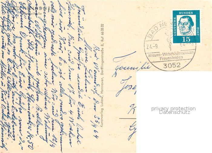 72961806 alte Postkarte Bad Nenndorf Wandelhalle postalisch gelaufen Erhaltung siehe scans [NatalD47] KatCode: 11110003257006