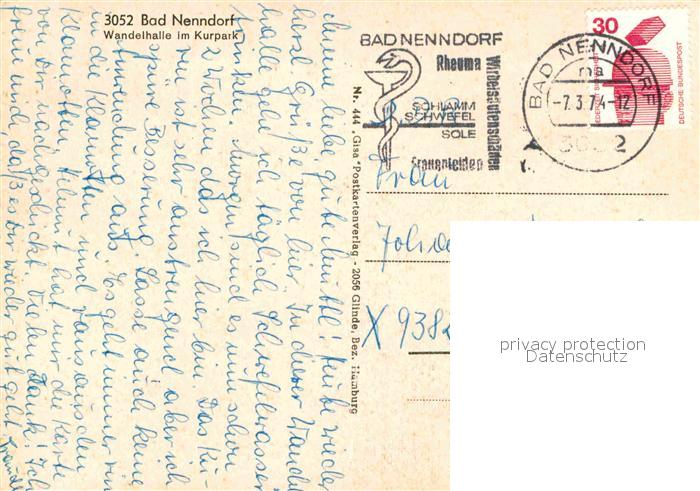 72617282 alte Postkarte Bad Nenndorf Wandelhalle im Kurpark postalisch gelaufen Erhaltung siehe scans [WerneD78] KatCode: 11110003257006