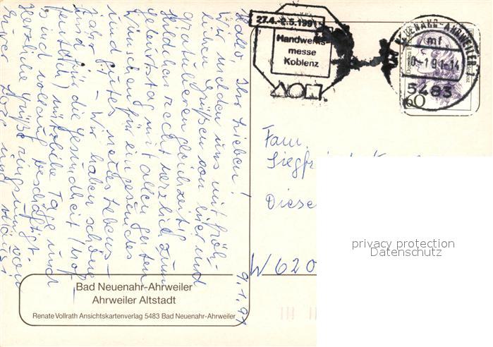 73231050 alte Postkarte Bad Neuenahr-Ahrweiler Ahrweiler Altstadt postalisch gelaufen Erhaltung siehe scans [KathaD81] KatCode: 11110007131007