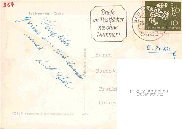 72725790 alte Postkarte Bad Neuenahr-Ahrweiler Casino postalisch gelaufen Erhaltung siehe scans [WerneD78] KatCode: 11110007131007