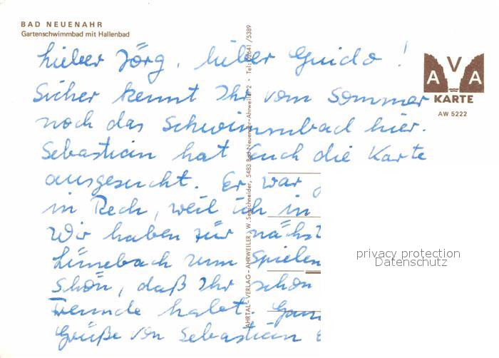 72751697 Bad Neuenahr-Ahrweiler Gartenschwimmbad mit Hallenbad postalisch nicht gelaufen Erhaltung siehe scans [FriedD77] KatCode: 11110007131007