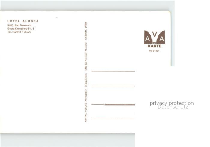 72331698 Bad Neuenahr-Ahrweiler Hotel Aurora postalisch nicht gelaufen Erhaltung siehe scans KatCode: 11110007131007