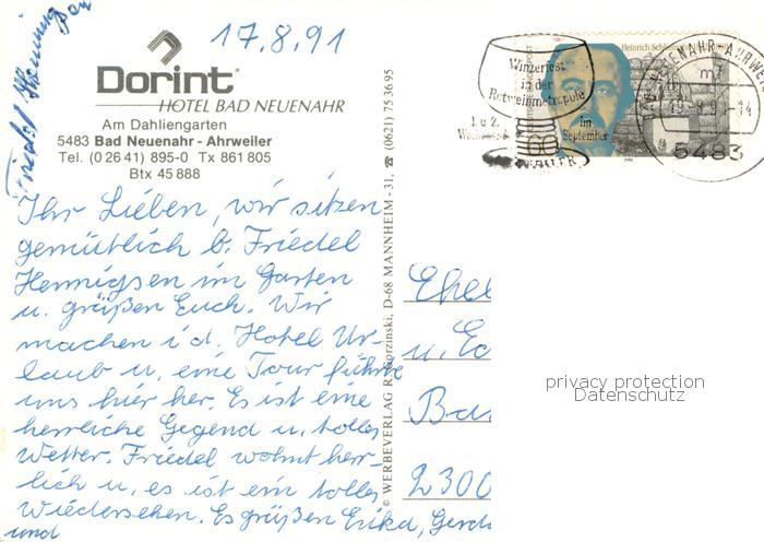 73758766 alte Postkarte Bad Neuenahr-Ahrweiler Hotel Dorint Aussenansicht m. Teich u. Park postalisch gelaufen Erhaltung siehe scans [LiesaD40] KatCode: 11110007131007
