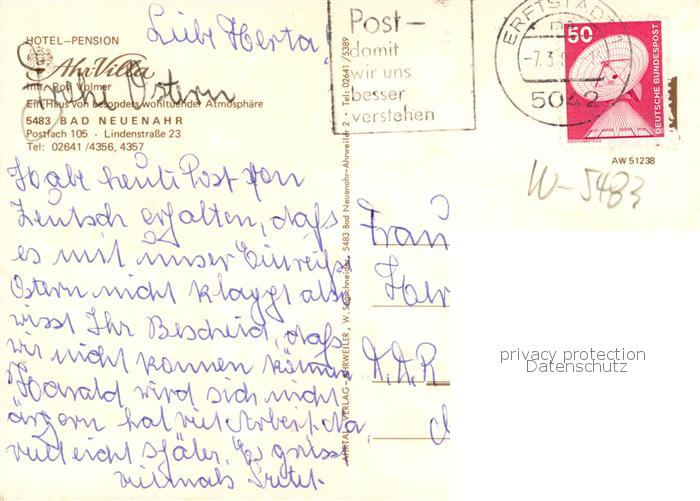 73829860 alte Postkarte Bad Neuenahr-Ahrweiler Hotel Pension Ahr Villa postalisch gelaufen Erhaltung siehe scans [WerneD78] KatCode: 11110007131007