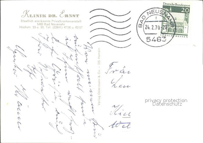 72321457 alte Postkarte Bad Neuenahr-Ahrweiler Klinik Dr. Ernst postalisch gelaufen Erhaltung siehe scans KatCode: 11110007131007