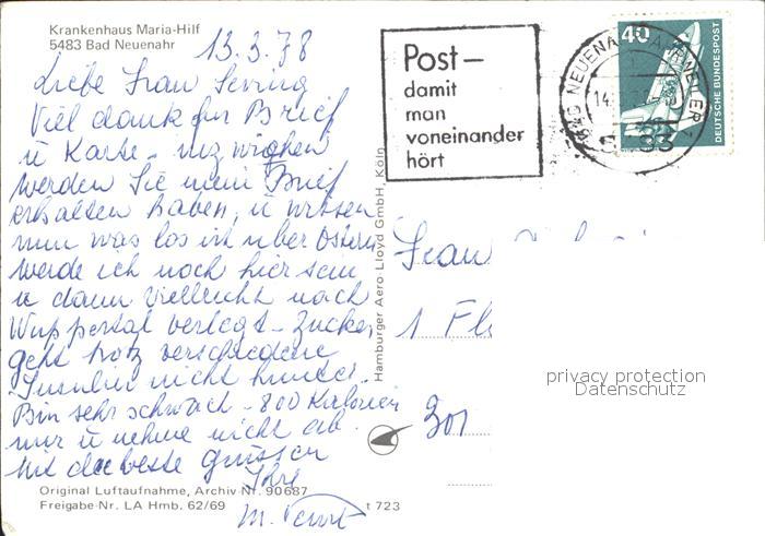 72046408 alte Postkarte Bad Neuenahr-Ahrweiler Krankenhaus Maria-Hilf Fliegeraufnahme postalisch gelaufen Erhaltung siehe scans KatCode: 11110007131007