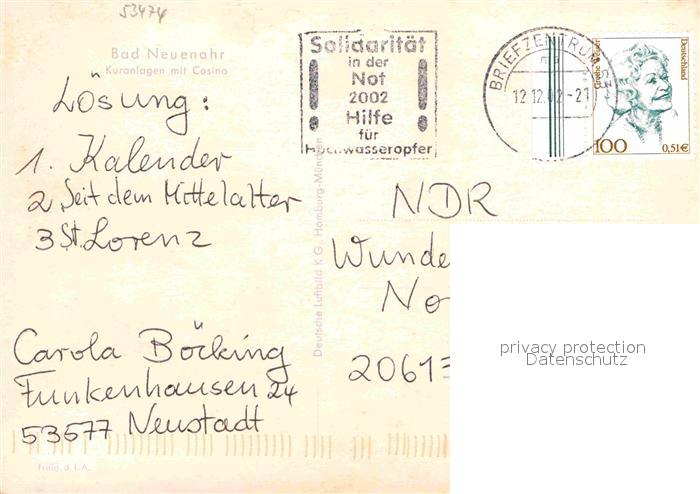 72725891 alte Postkarte Bad Neuenahr-Ahrweiler Kuranlagen mit Casino Fliegeraufnahme postalisch gelaufen Erhaltung siehe scans [WerneD78] KatCode: 11110007131007