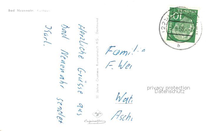 73047636 alte Postkarte Bad Neuenahr-Ahrweiler Kurhaus postalisch gelaufen Erhaltung siehe scans [WerneD78] KatCode: 11110007131007