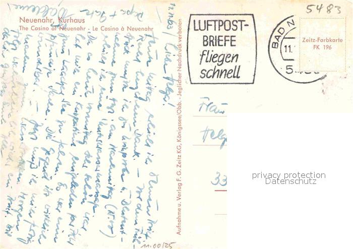 72901041 alte Postkarte Bad Neuenahr-Ahrweiler Kurhaus Casino postalisch gelaufen Erhaltung siehe scans [WerneD78] KatCode: 11110007131007