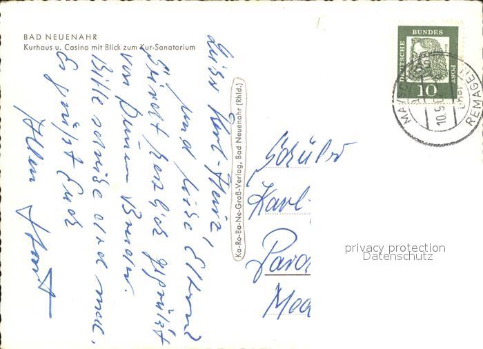 72605497 alte Postkarte Bad Neuenahr-Ahrweiler Kurhaus Casino Kursanatorium Kurpark Fontaene postalisch gelaufen Erhaltung siehe scans [FriedD77] KatCode: 11110007131007
