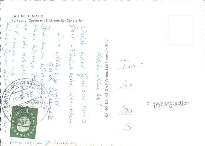 72296408 alte Postkarte Bad Neuenahr-Ahrweiler Kurhaus Casino Kursanatorium Park Fontaene postalisch gelaufen Erhaltung siehe scans KatCode: 11110007131007