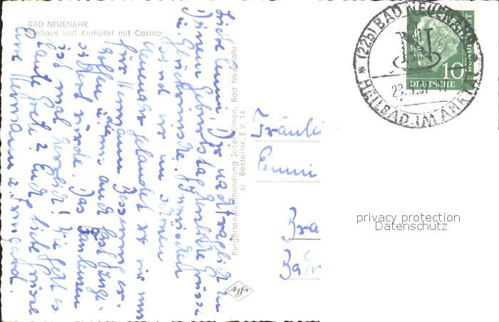 72259497 alte Postkarte Bad Neuenahr-Ahrweiler Kurhaus Kurhotel Kasino postalisch gelaufen Erhaltung siehe scans KatCode: 11110007131007