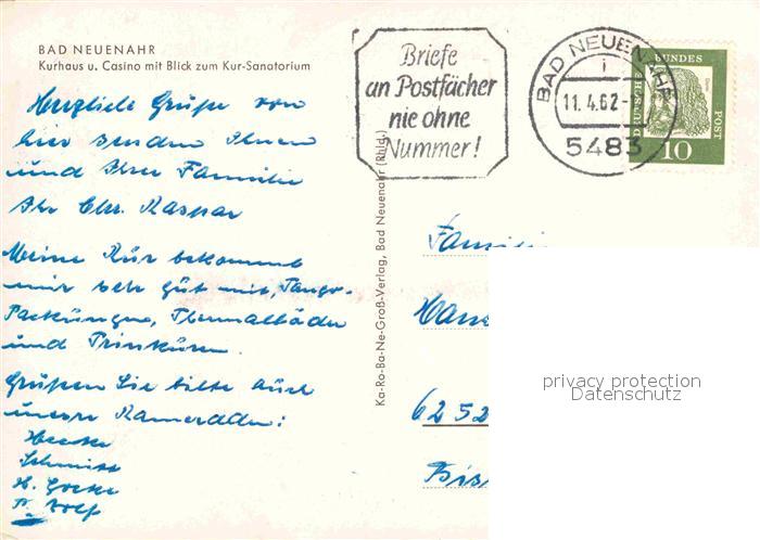 72897362 alte Postkarte Bad Neuenahr-Ahrweiler Kurhaus mit Casino und Kur Sanatorium postalisch gelaufen Erhaltung siehe scans [WerneD78] KatCode: 11110007131007