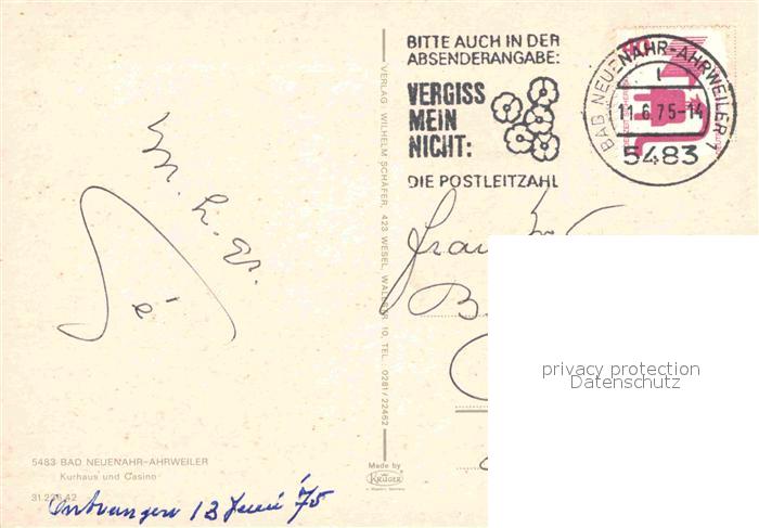 72785909 alte Postkarte Bad Neuenahr-Ahrweiler Kurhaus und Casino postalisch gelaufen Erhaltung siehe scans [WerneD78] KatCode: 11110007131007