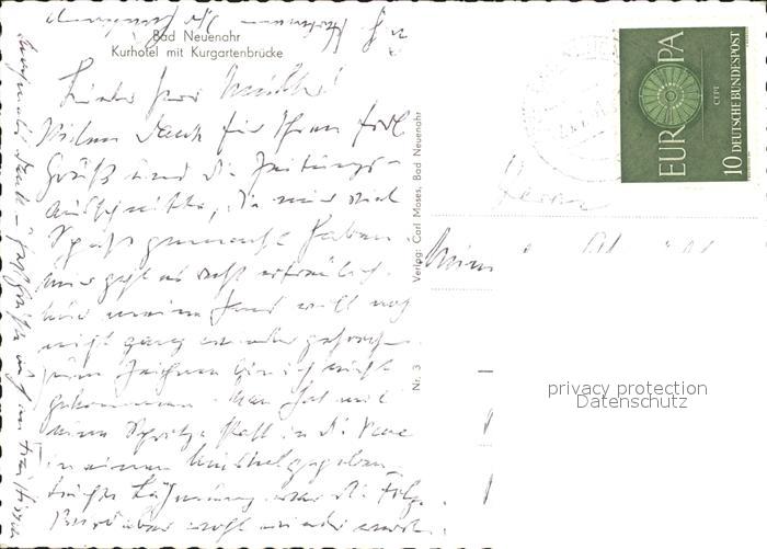 71984225 alte Postkarte Bad Neuenahr-Ahrweiler Kurhotel Kurgartenbruecke postalisch gelaufen Erhaltung siehe scans KatCode: 11110007131007