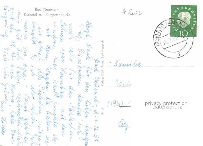 72819319 alte Postkarte Bad Neuenahr-Ahrweiler Kurhotel Kurgartenbruecke postalisch gelaufen Erhaltung siehe scans [KathaD81] KatCode: 11110007131007