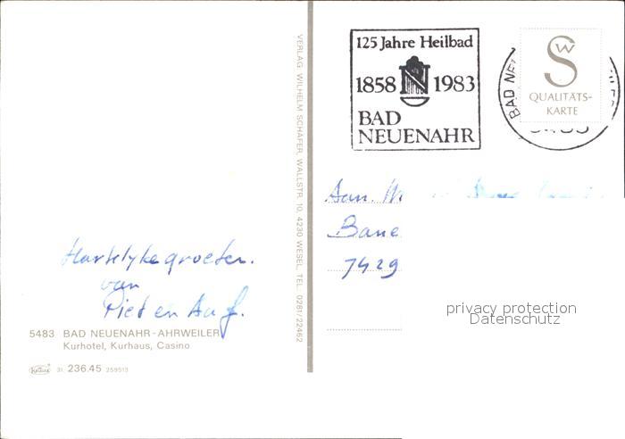 72416466 alte Postkarte Bad Neuenahr-Ahrweiler Kurhotel Kurhaus Casino postalisch gelaufen Erhaltung siehe scans KatCode: 11110007131007