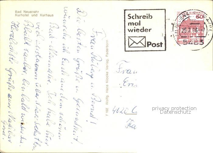 72512516 alte Postkarte Bad Neuenahr-Ahrweiler Kurhotel und Kurhaus postalisch gelaufen Erhaltung siehe scans KatCode: 11110007131007