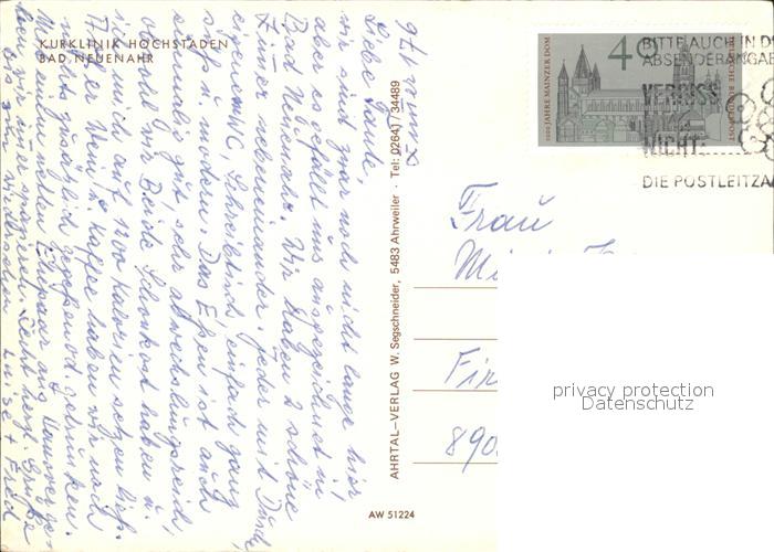 71948512 alte Postkarte Bad Neuenahr-Ahrweiler Kurklinik Hochstaden postalisch gelaufen Erhaltung siehe scans KatCode: 11110007131007