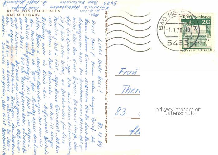 72913986 alte Postkarte Bad Neuenahr-Ahrweiler Kurklinik Hochstaden postalisch gelaufen Erhaltung siehe scans [KathaD81] KatCode: 11110007131007