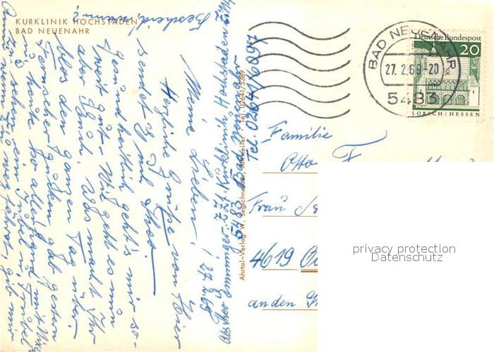 73041889 alte Postkarte Bad Neuenahr-Ahrweiler Kurklinik Hochstaden Details postalisch gelaufen Erhaltung siehe scans [WerneD78] KatCode: 11110007131007