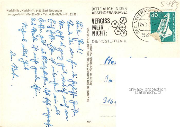 73227629 alte Postkarte Bad Neuenahr-Ahrweiler Kurklinik Kur Koeln postalisch gelaufen Erhaltung siehe scans [NatalD47] KatCode: 11110007131007