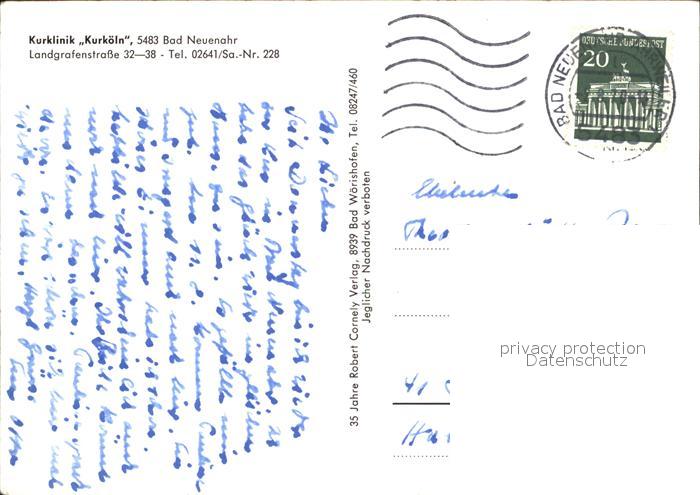 71972692 alte Postkarte Bad Neuenahr-Ahrweiler Kurklinik Kurkoeln postalisch gelaufen Erhaltung siehe scans KatCode: 11110007131007
