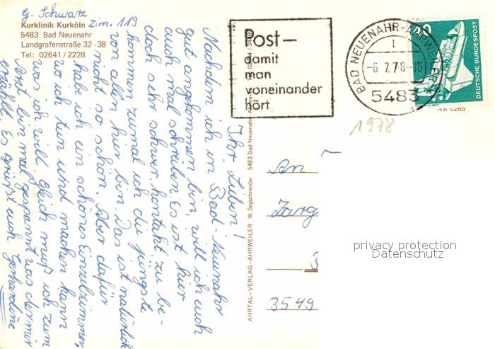 72893054 alte Postkarte Bad Neuenahr-Ahrweiler Kurklinik Kurkoeln postalisch gelaufen Erhaltung siehe scans [LiesaD40] KatCode: 11110007131007