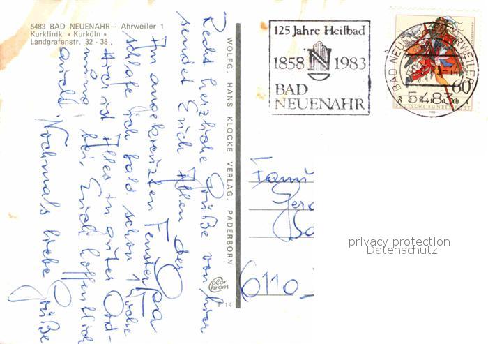 72797060 alte Postkarte Bad Neuenahr-Ahrweiler Kurklinik Kurkoeln postalisch gelaufen Erhaltung siehe scans [LiesaD40] KatCode: 11110007131007