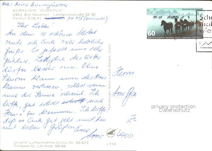 72177131 alte Postkarte Bad Neuenahr-Ahrweiler Kurklinik Kurkoeln Fliegeraufnahme postalisch gelaufen Erhaltung siehe scans KatCode: 11110007131007