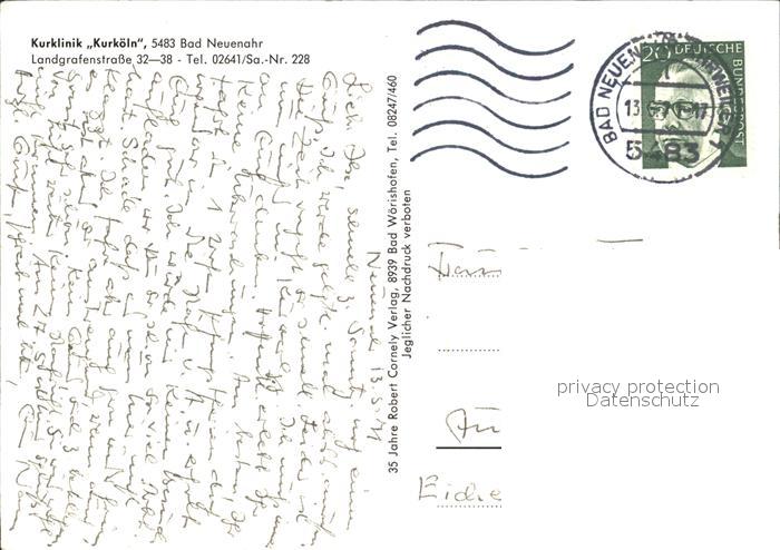 72420856 alte Postkarte Bad Neuenahr-Ahrweiler Kurklinik Kurkoeln Speisesaal Hallenbad postalisch gelaufen Erhaltung siehe scans KatCode: 11110007131007