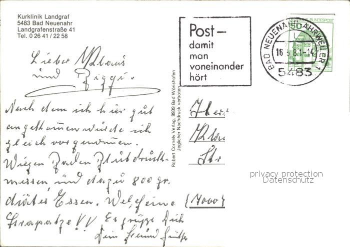 72426030 alte Postkarte Bad Neuenahr-Ahrweiler Kurklinik Landgraf Restaurant Garten Sporthalle postalisch gelaufen Erhaltung siehe scans KatCode: 11110007131007