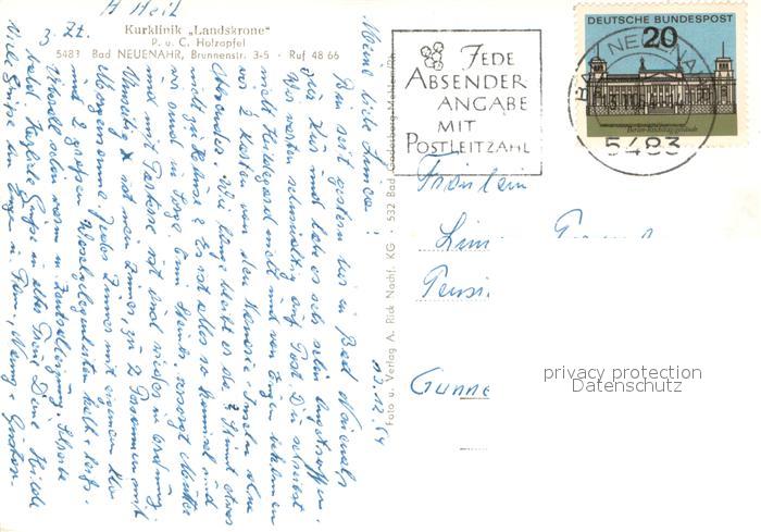 73641117 alte Postkarte Bad Neuenahr-Ahrweiler Kurklinik Landskrone postalisch gelaufen Erhaltung siehe scans [WerneD78] KatCode: 11110007131007