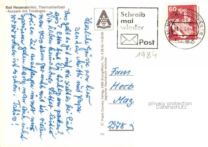 72893051 alte Postkarte Bad Neuenahr-Ahrweiler Kurpark mit Trinkhalle postalisch gelaufen Erhaltung siehe scans [LiesaD40] KatCode: 11110007131007
