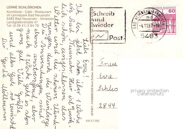 72950934 alte Postkarte Bad Neuenahr-Ahrweiler Lenne Schloesschen postalisch gelaufen Erhaltung siehe scans [WerneD78] KatCode: 11110007131007