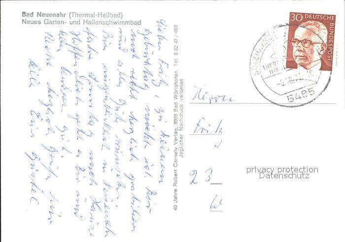 72292837 alte Postkarte Bad Neuenahr-Ahrweiler Neues Garten- und Hallenschwimmbad postalisch gelaufen Erhaltung siehe scans KatCode: 11110007131007