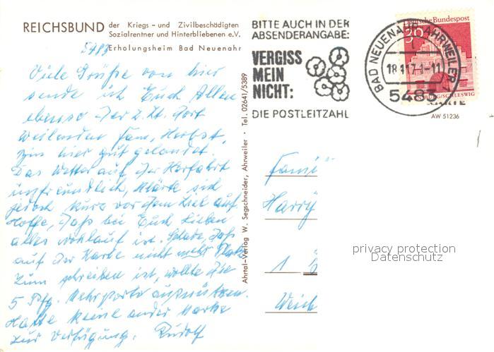 73105470 alte Postkarte Bad Neuenahr-Ahrweiler Reichsbund Erholungsheim postalisch gelaufen Erhaltung siehe scans [WerneD78] KatCode: 11110007131007