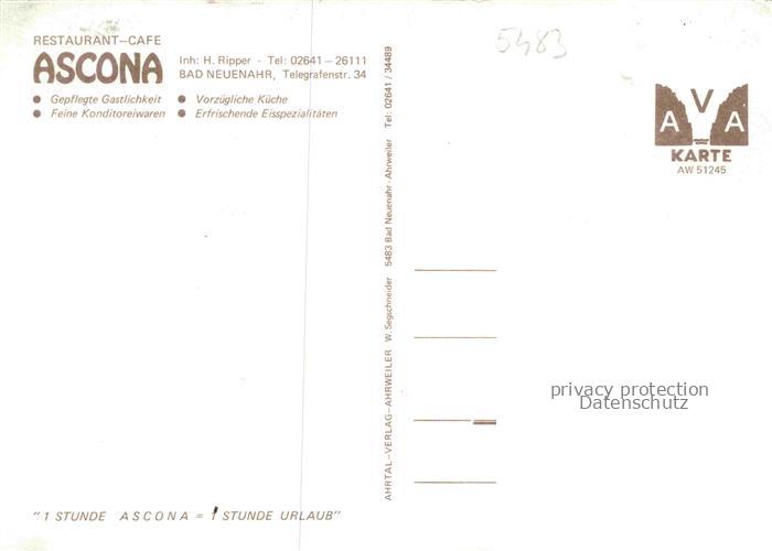 74054327 BAD NEUENAHR-AHRWEILER Restaurant Ascona Cafe Gastraeume postalisch nicht gelaufen Erhaltung siehe scans [WerneD78] KatCode: 11110007131007