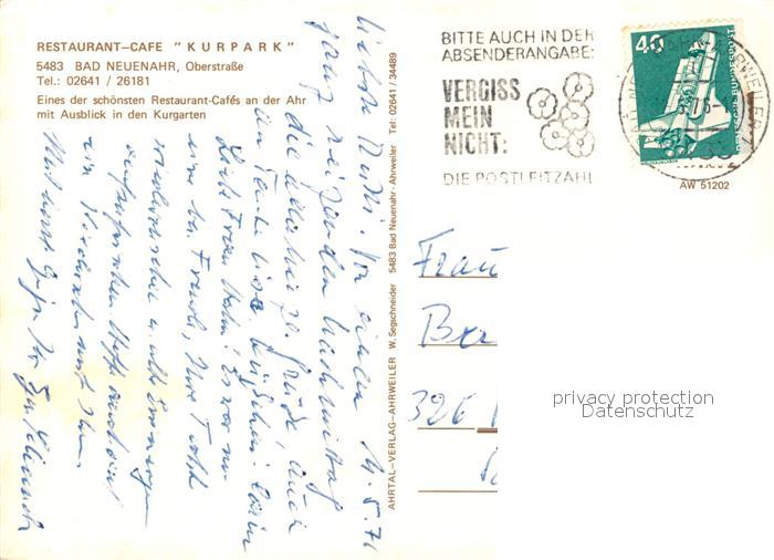 73125781 alte Postkarte Bad Neuenahr-Ahrweiler Restaurant Cafe Kurpark postalisch gelaufen Erhaltung siehe scans [LiesaD40] KatCode: 11110007131007