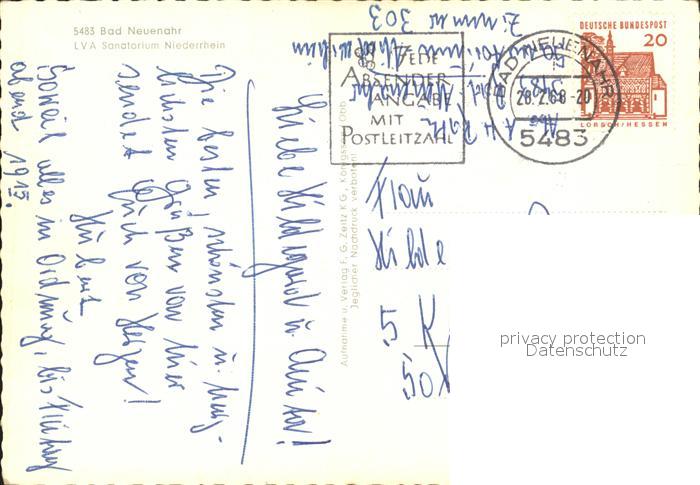 72371554 alte Postkarte Bad Neuenahr-Ahrweiler Sanatorium Niederrhein postalisch gelaufen Erhaltung siehe scans KatCode: 11110007131007