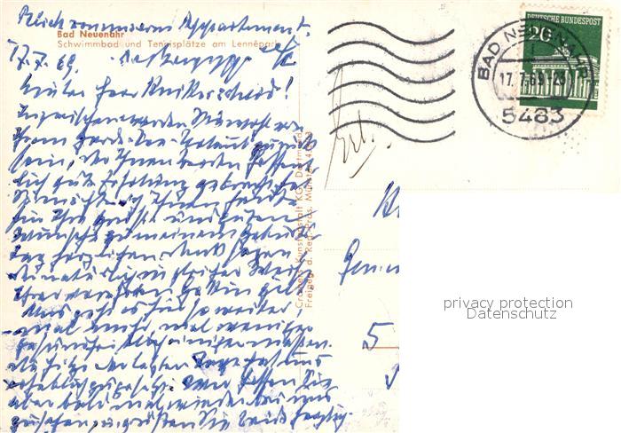 73011168 alte Postkarte Bad Neuenahr-Ahrweiler Schwimmbad und Tennisplaetze am Lennepark Fliegeraufnahme postalisch gelaufen Erhaltung siehe scans [WerneD78] KatCode: 11110007131007
