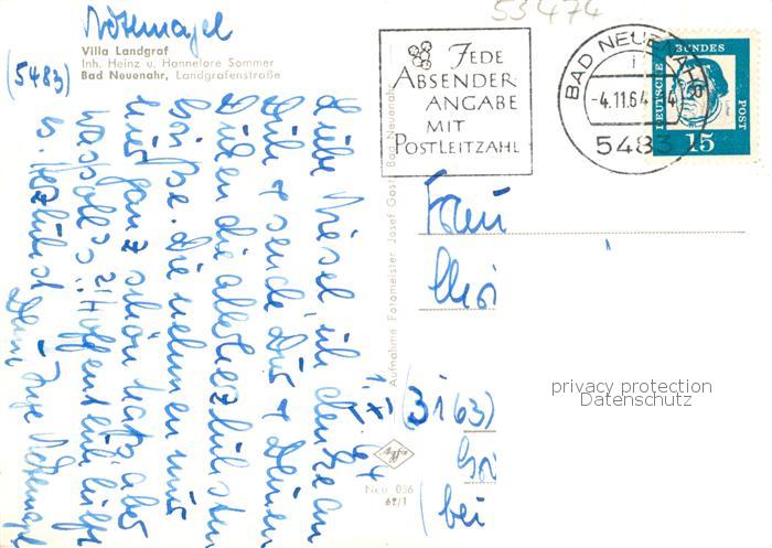 73864054 alte Postkarte Bad Neuenahr-Ahrweiler Villa Landgraf postalisch gelaufen Erhaltung siehe scans [WerneD78] KatCode: 11110007131007