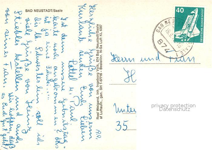 73128442 alte Postkarte Bad Neustadt Fliegeraufnahme postalisch gelaufen Erhaltung siehe scans [NatalD47] KatCode: 11110009673114