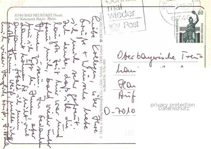 72705748 alte Postkarte Bad Neustadt Fliegeraufnahme Brunnen Turm postalisch gelaufen Erhaltung siehe scans [AndreD76] KatCode: 11110009673114